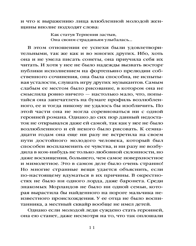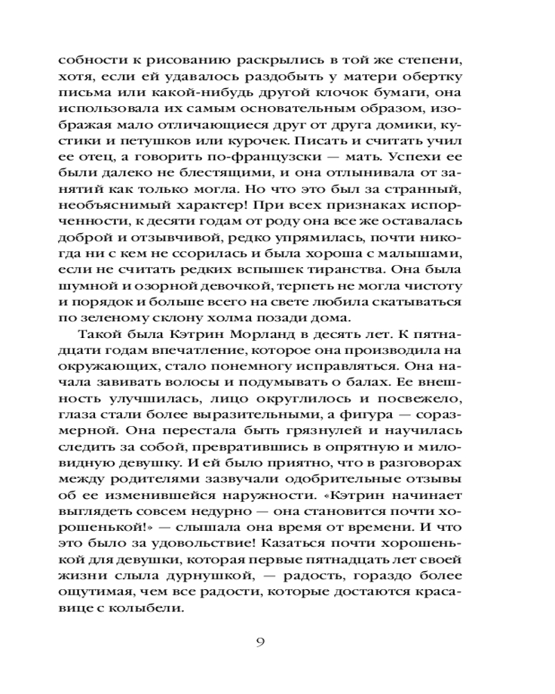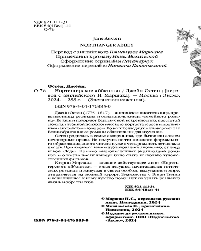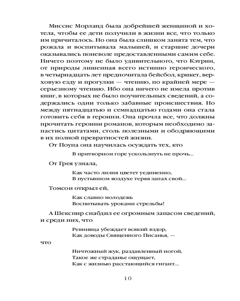💳 Оплатить за товар можно при получении 🇰🇿 Есть бесплатная доставка по Казахстану от 1 дня 🎁 Копите бонусы с каждой покупки Серия: Элегантная классика «Нортенгерское аббатство» — самая озорная книга Джейн Остен, изящная ирония над канонами любовного романа. Родители Кэтрин не слишком богаты, но отнюдь не бедны. Она не слишком красива, но и не дурна собой. Кэтрин наивна, но лишь из-за недостатка жизненного опыта. Она обожает готические романы, и вся ее жизнь, как ей кажется, полна мрачных тайн и загадок. И только благодаря любви героиня обретает новый взгляд на реальность, ей открываются неведомые прежде стороны жизни. |