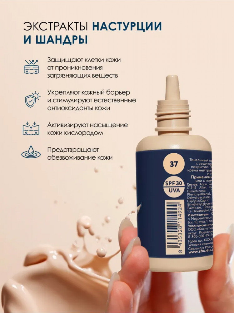 SHU ВВ крем для лица SPF30 «Dewy Skin», тон 38 натуральный бежевый