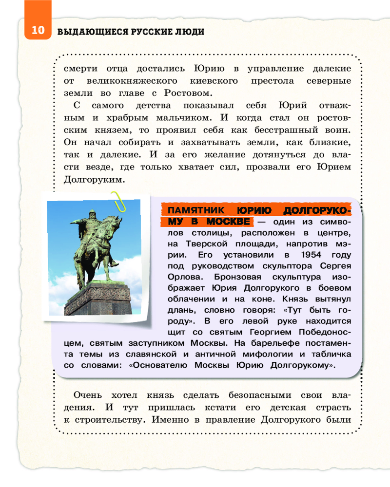 💳 Оплатить за товар можно при получении 🇰🇿 Есть бесплатная доставка по Казахстану от 1 дня 🎁 Копите бонусы с каждой покупки Серия: Детские путеводители. Всегда на каникулах Книга «Выдающиеся русские люди, о которых знает весь мир» расскажет о 50-ти великих деятелях нашей страны, повлиявших на ее историю и прославивших русскую культуру на весь мир. В ней представлены великие исторические личности, известные ученые, главные деятели культуры и смелые первооткрыватели. |