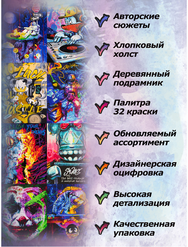 💳 Оплатить за товар можно при получении 🇰🇿 Есть бесплатная доставка по Казахстану от 1 дня 🎁 Копите бонусы с каждой покупки Встречайте Живопись по номерам в современном и модном направлении Street Art! |
