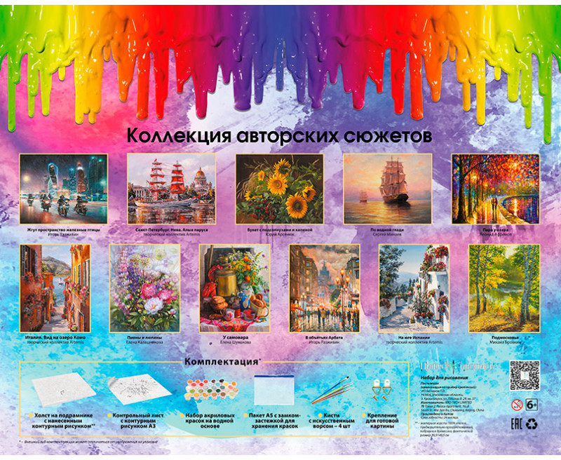 💳 Оплатить за товар можно при получении 🇰🇿 Есть бесплатная доставка по Казахстану от 1 дня 🎁 Копите бонусы с каждой покупки Мы любим цветы за их красоту и свежесть, потому что они способны приносить радость, а может они нам просто нравятся, на них приятно смотреть, а еще лучше их нарисовать. Набор для рисования по номерам от Белоснежки — это очаровательный сюжет в котором на первый план выходят цветы. Основа картины — хлопковый холст на деревянном подрамнике с напечатанной схемой изображения. Схема выполнена тонкими линиями серого цвета с номерами внутри областей — номера соответствуют цвету краски. Холст прогрунтован и полностью готов к нанесению краски. Набор комплектуется акриловыми красками на водной основе, которые не имеют запаха и являются безопасными. |