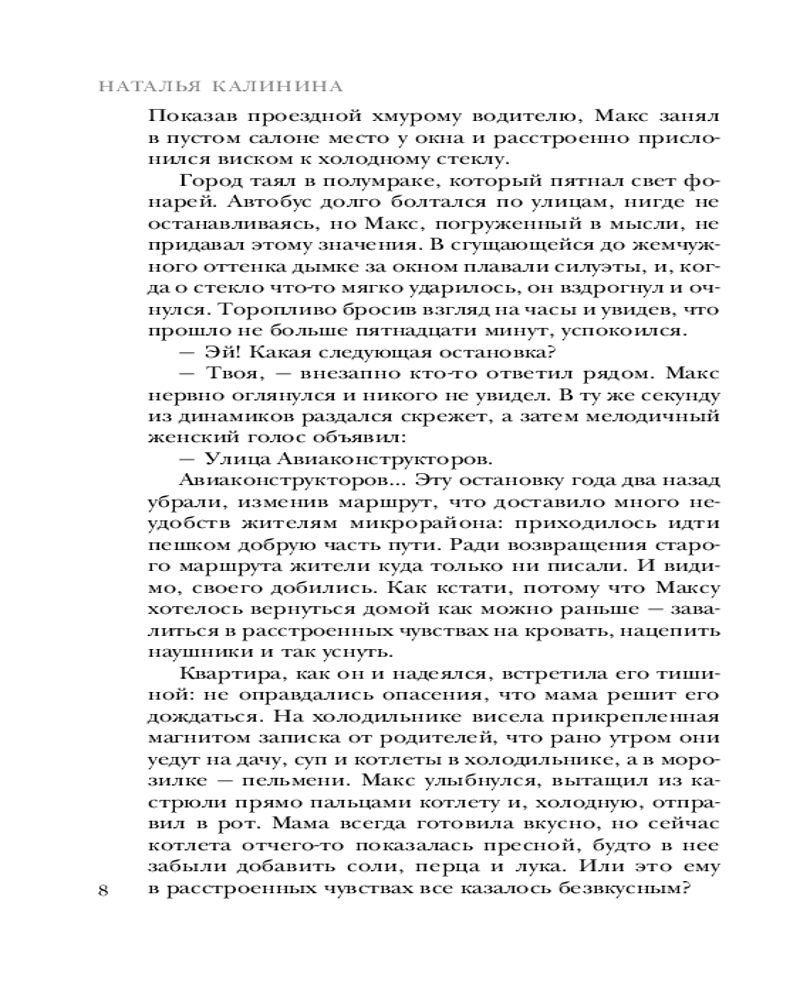 | Наталья Калинина родилась в 1978 году в городе Запорожье. Все детство была окружена родительской заботой и росла примерной дочерью и отличницей. Всем игрушкам и играм предпочитала книги. В школе писала сценарии для КВНов и юмористические рассказы. Но такое "спокойное" увлечение ничуть не мешало ей быть в глубине души спонтанной натурой. После школы, вопреки ожиданиям, Наташа поступила на биохимический факультет. А после вуза устроилась на работу в стоматологический институт, чтобы... |