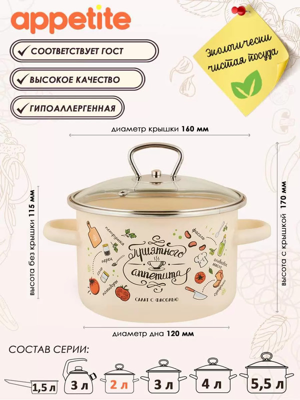 Appetite Набор кастрюль «Приятного аппетита»-25% +480 качество красивый дизайн