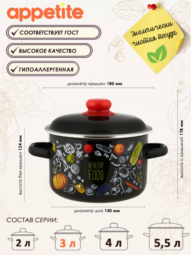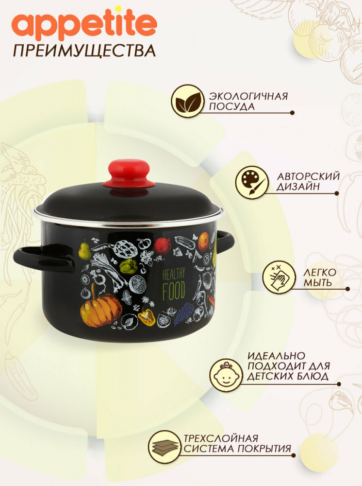 Appetite Кастрюля с крышкой «Healthy food»