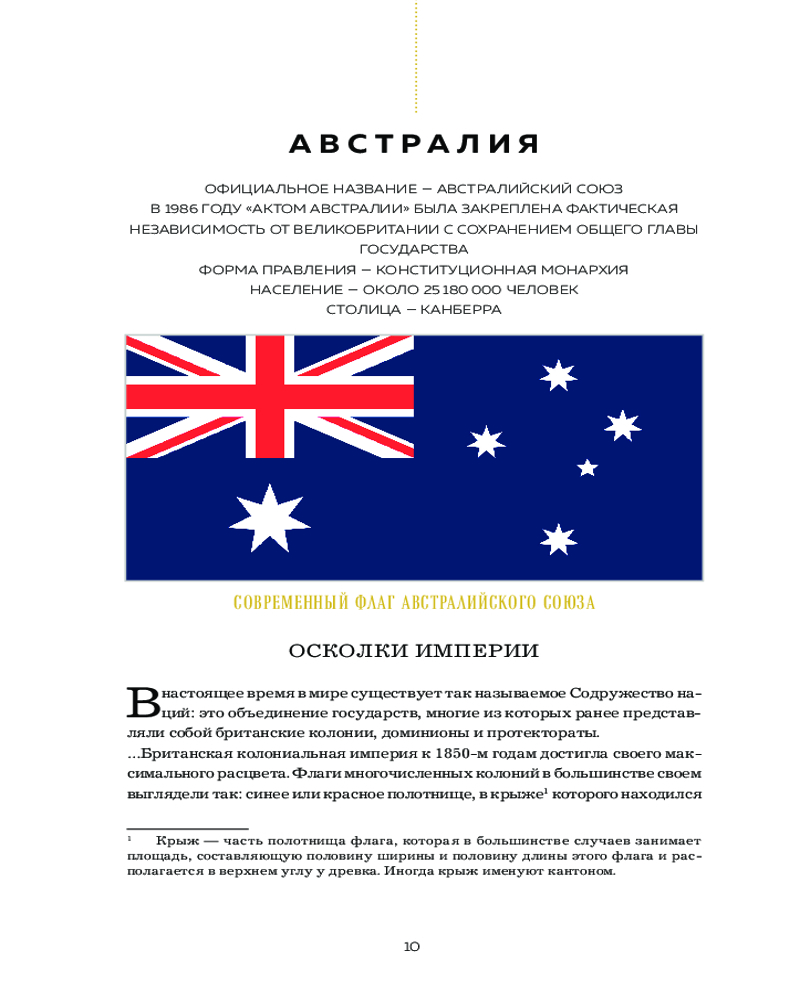 💳 Оплатить за товар можно при получении 🇰🇿 Есть бесплатная доставка по Казахстану 🎁 Копите бонусы с каждой покупки Серия: Подарочные издания. Коллекционирование Взрослым и детям любого возраста будет интересно узнать о красочных флагах мира, интересных фактах о странах и проверить свои познания в географии. Изучение флагов открывает перед нами удивительный мир. За каждым государственным символом стоит долгая история: иногда — трагичная, иногда — романтическая, но никогда не скучная. Например, всем известно, что символом Канады, изображенным на ее флаге, является кленовый лист. Но знаете ли вы, что в XIX столетии обсуждался вопрос о размещении на канадском флаге изображения... бобра? А кленовый лист, изображенный на флаге сейчас, представлен неправильно с точки зрения ботаники? |