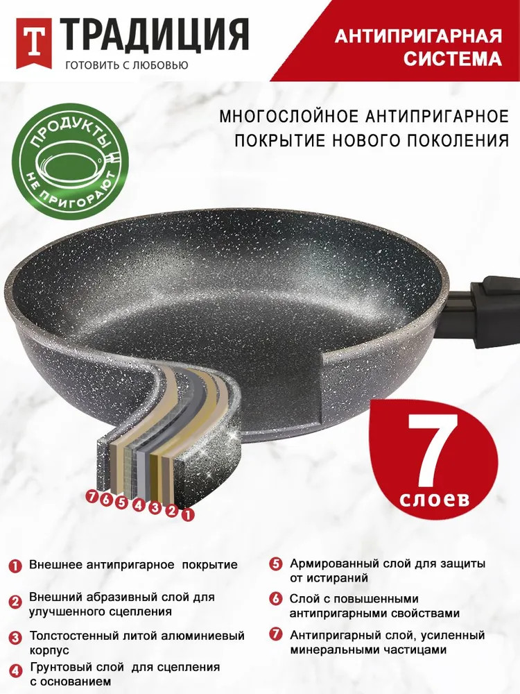 • усиленное 7-ми слойное антипригарное покрытие;