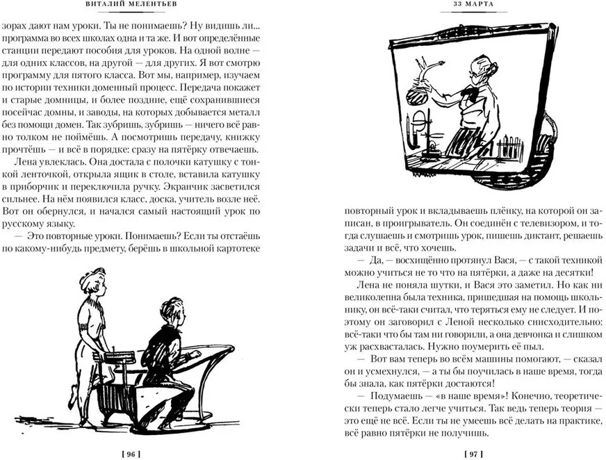 33 марта. Приключения Васи Голубева и Юрки БойцоваВ данный момент этот товар отсутствует в продаже. Возможно, у нас найдется аналогичный или похожий товар здесь. Серия: Детская библиотека. Большие книги Жили на свете два обычных мальчика. Даже имена у них были ничем не примечательные — Вася Голубев и Юрка Бойцов. Как-то раз Вася отправился на поиски зуба мамонта, а Юрка вместе с верным псом Шариком сбежал из дома — вот тогда-то и начались их невероятные приключения. Васе, например, довелось побывать в далёком будущем, подружиться с мамонтом и очутиться в 33 марта. А Юрка попал на самый настоящий космический корабль и познакомился со сверстниками из другой цивилизации. Но мальчишки и не подозревали, что впереди ждёт ещё одно приключение, участвовать в котором предстоит им обоим... Красочный мир фантастической трилогии отразили в живых, запоминающихся иллюстрациях мастера книжной графики Анатолий Елисеев и Михаил Скобелев. |