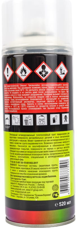 Высококачественный толстослойный 1К антикоррозионный эпоксидный грунт HB ( High Build) предназначен для подготовки поверхности деталей автомобилей при ремонтной покраске. Может применяться как антикоррозионный грунт, а также в качестве грунта выравнивателя. Наносится на зашлифованные и обезжиренные старые лакокрасочные покрытия, поверхности из черных и цветных металлов. Благодаря эффективной комбинации антикоррозионных пигментов, обладает хорошими антикоррозионными свойствами и отличной адгезией. Возможно нанесение «мокрым по мокрому». Цвет - светло-серый.