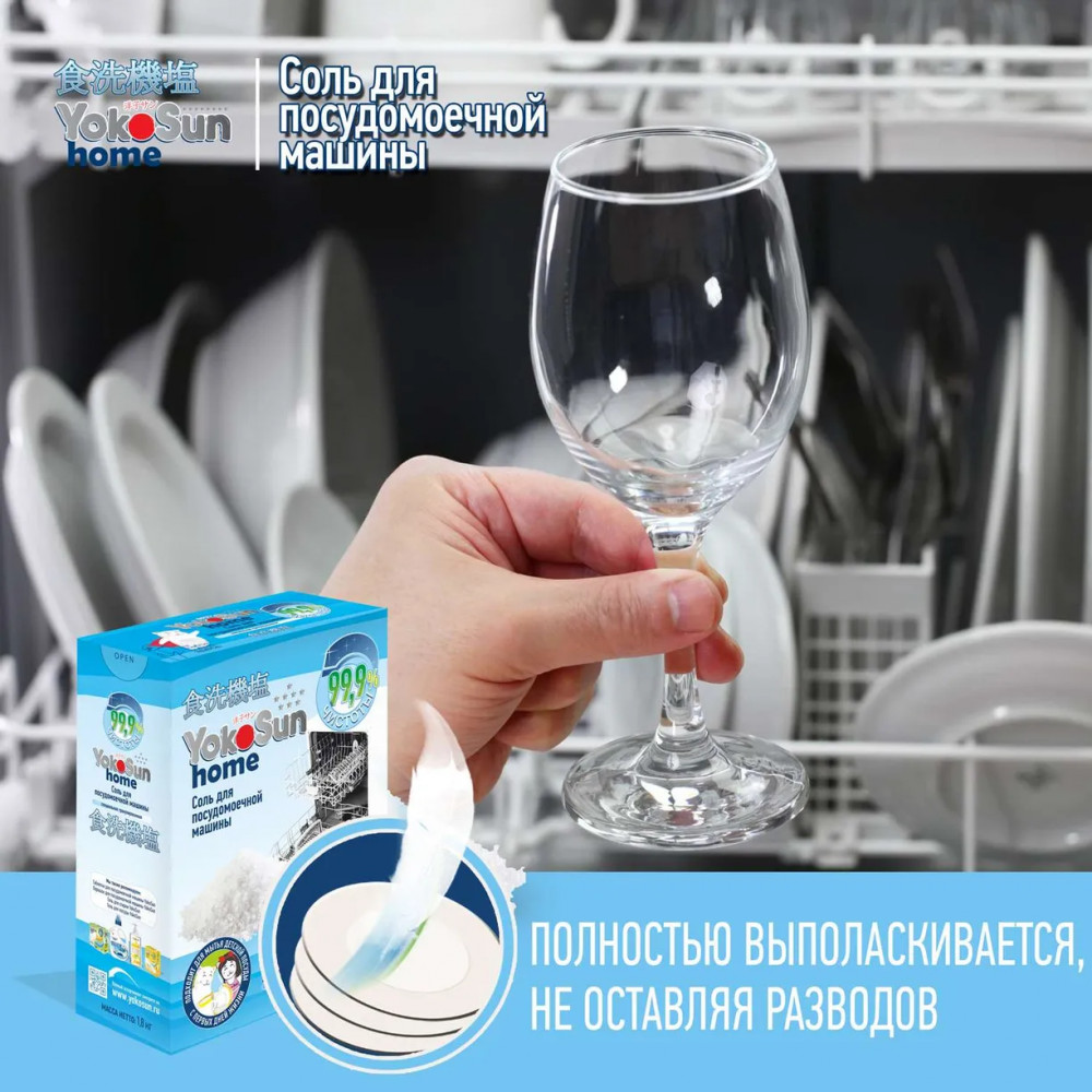 YokoSun Соль для посудомоечной машиныВ данный момент этот товар отсутствует в продаже. Возможно, у нас найдется аналогичный или похожий товар здесь. Подходит для домашних посудомоечных машин всех типов. Особая формула эффективно смягчает воду, предотвращая образование накипи и известкового налета. Обеспечивает экономичный расход и повышает эффективность моющих средств для посудомоечных машин. |