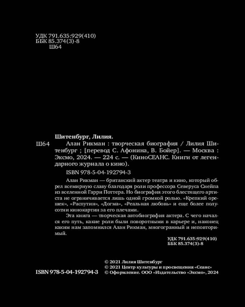💳 Оплатить за товар можно при получении 🇰🇿 Есть бесплатная доставка по Казахстану от 1 дня 🎁 Копите бонусы с каждой покупки Серия: КиноСЕАНС. Книги от легендарного журнала о кино «Я — тот персонаж, который не должен вам нравиться». — Алан Рикман. |