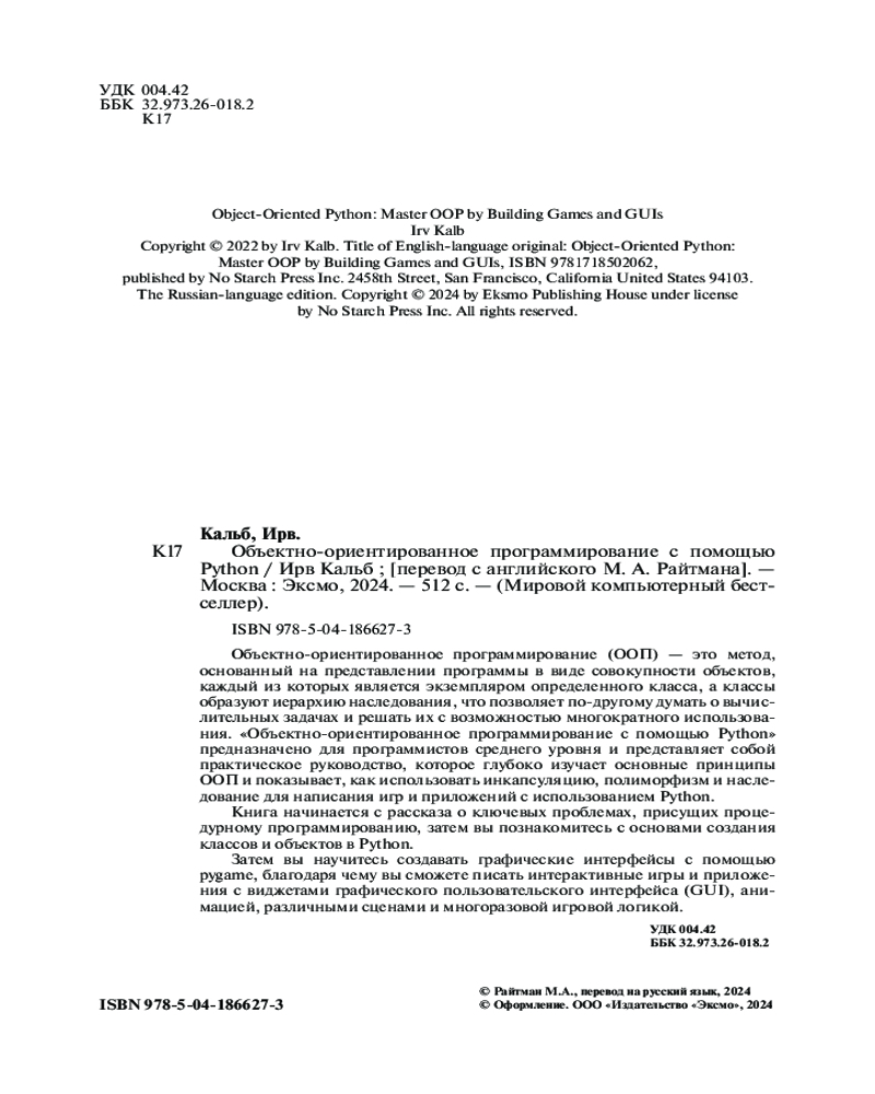 | Объектно-ориентированное программирование с помощью Python Ирв Кальб +314 (бонусов)