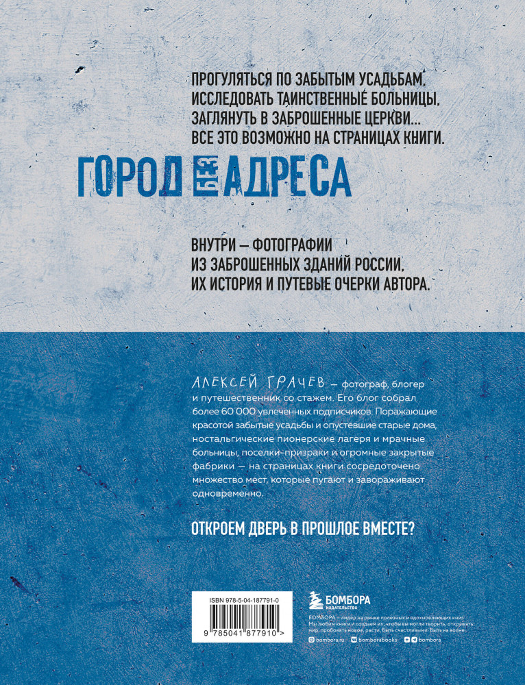 💳 Оплатить за товар можно при получении 🇰🇿 Есть бесплатная доставка по Казахстану от 1 дня 🎁 Копите бонусы с каждой покупки Серия: Истории домов и их жителей Вы когда-нибудь мечтали прогуляться по заброшенному зданию? Например, по старинной усадьбе с многовековой историей или по опустевшей школе, в которой когда-то кипела жизнь, а сейчас можно встретить только одинокие парты... Такие загадочные места есть почти в каждом городе страны. Чаще всего у них даже не осталось адреса, но есть история, которая притягивает множество людей. |