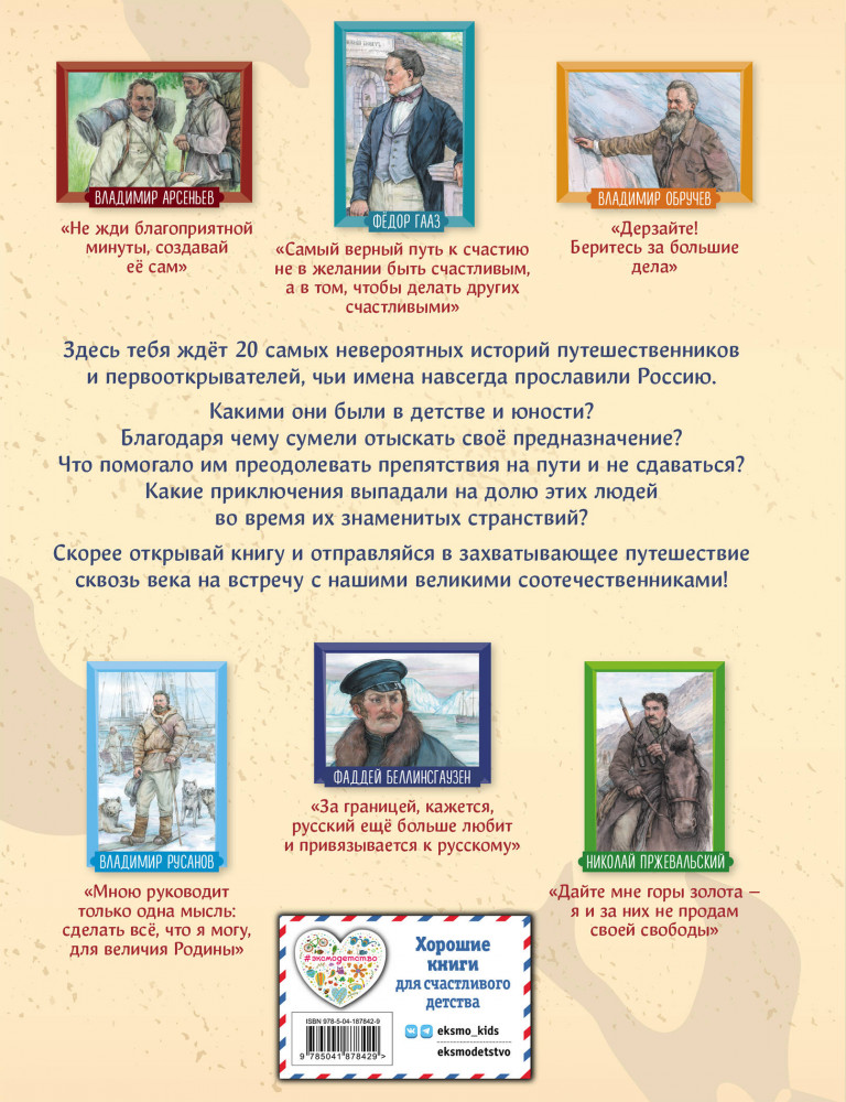 💳 Оплатить за товар можно при получении 🇰🇿 Есть бесплатная доставка по Казахстану от 1 дня 🎁 Копите бонусы с каждой покупки Серия: Великие люди великой страны Эта книга патриотической серии «Великие люди великой страны» рассказывает о двадцати наших знаменитых соотечественниках — путешественниках и первооткрывателях, чьи имена навсегда останутся в истории России. Кто был капитаном первого русского корабля, совершившего кругосветное плавание? Кому посчастливилось обнаружить древний мёртвый город? Кого называют русским Колумбом ХХ века? Кто открыл Антарктиду? |