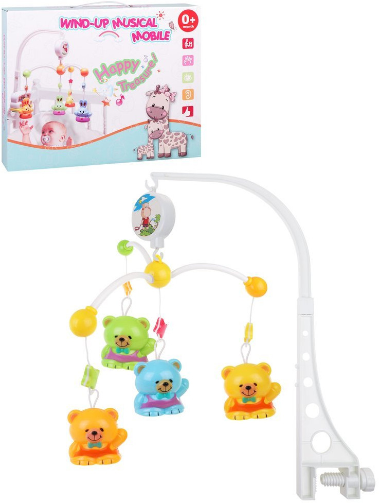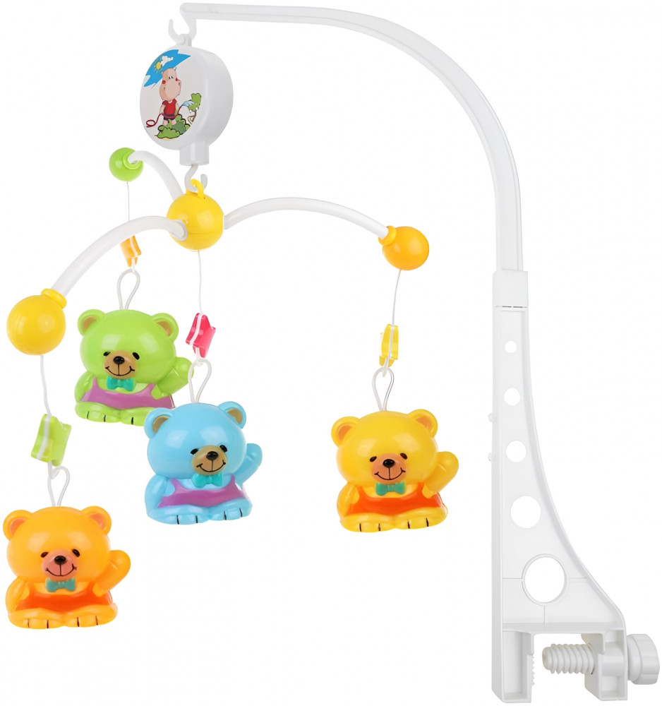 Наша игрушка Мобиль на кроваткуВ данный момент этот товар отсутствует в продаже. Возможно, у нас найдется аналогичный или похожий товар здесь. Мобиль — это первая игрушка для малыша! Мобиль устанавливается на детскую кроватку при помощи специального винтового крепления. Игрушки медленно вращаются под успокаивающую мелодию. Музыкальная панель работает на заводном механизме. В комплект входят 4 яркие, разноцветные игрушки в виде медвежат. Подвесные игрушки можно снять с кронштейна и пользоваться ими как отдельными погремушками. |