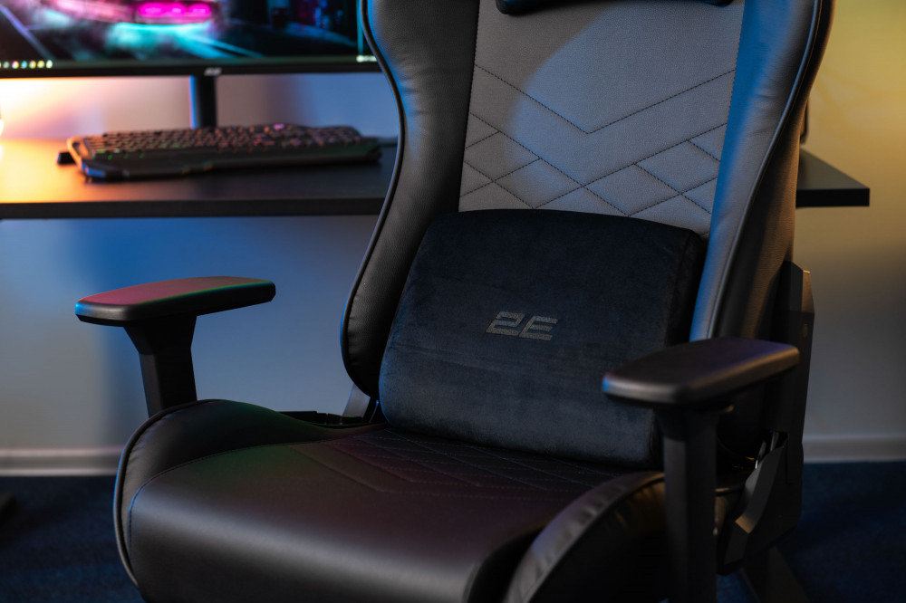 Кресло 2E Gaming Bushido II имеет высокий класс эргономики, поскольку обеспечивает улучшенную поддержку позвоночника и поясницы благодаря нейлоновым стропам, наполнителю из пены высокой плотности, анатомическим велюровым подушкам, уменьшающим нагрузку и позволяющим играть или работать с большей сосредоточенностью.
