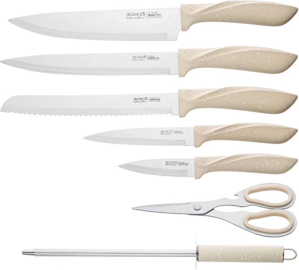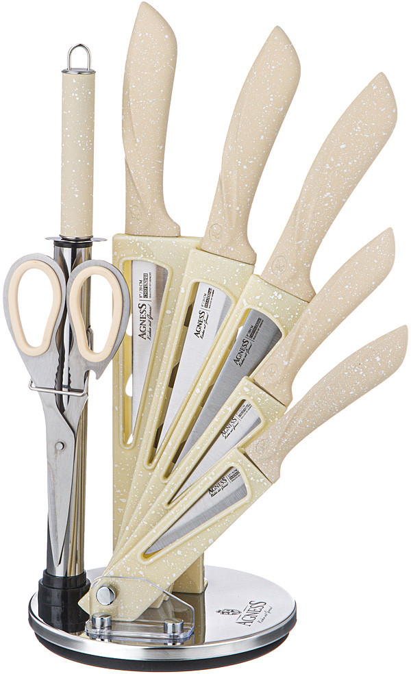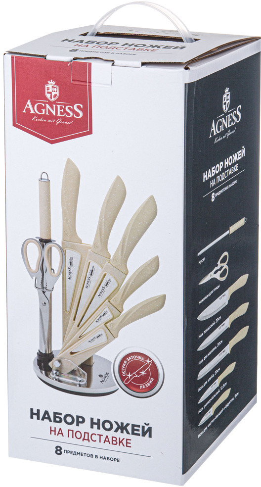 Нож — главный инструмент на кухне, а вернее ножи, так как даже самый лучший нож не сможет справиться со всем многообразием задач. Выбирая набор ножей Agness — Вы приобретаете комплект самых необходимых и чаще всего используемых ножей. Рекомендована ручная мойка.