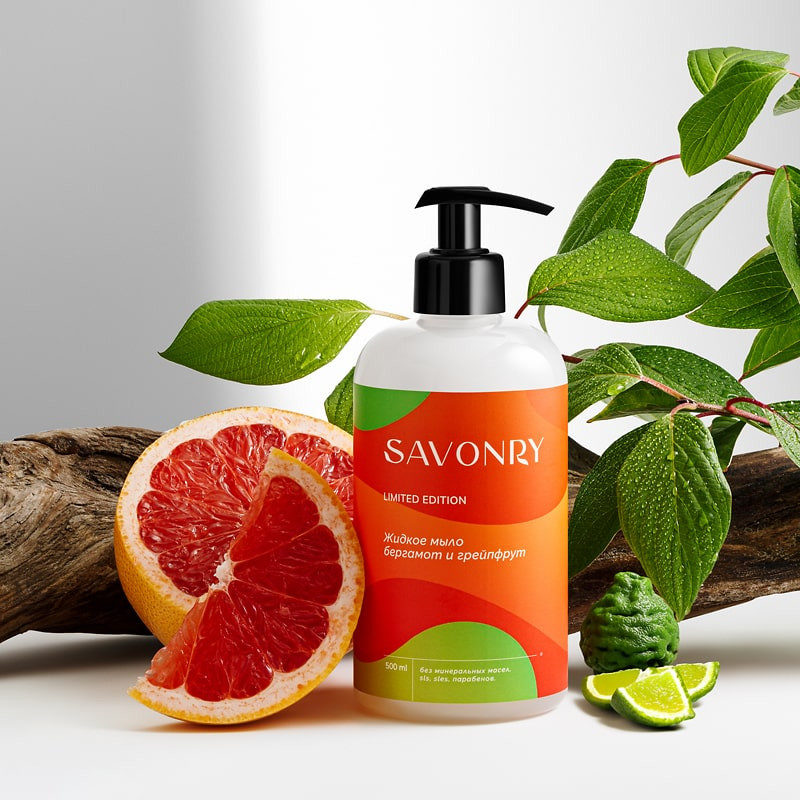 Savonry Мыло жидкое антибактериальное «Бергамот и грейпфрут»