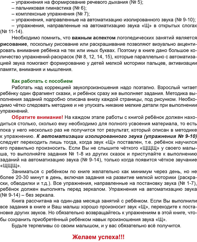 💳 Оплатить за товар можно при получении 🇰🇿 Есть бесплатная доставка по Казахстану от 1 дня 🎁 Копите бонусы с каждой покупки Серия: Говорим правильно Данное пособие предназначено для индивидуальной работы с детьми 3-5 лет по формированию правильного произношения звука «Щ». Эта книга поможет родителям организовать логопедические занятия с ребёнком дома, а логопеды могут использовать её на занятиях в образовательной организации. В книге три сказки-раскраски в стихах с различными заданиями, которые направлены на постановку и первичную автоматизацию звука «Щ» у детей 3-5 лет. Задания построены в интерактивной форме, когда ребёнок принимает непосредственное участие в действиях сказочных персонажей и традиционные (чаще всего скучные) логопедические занятия превращаются для ребёнка в интересную игру с героями сказочных историй. |
