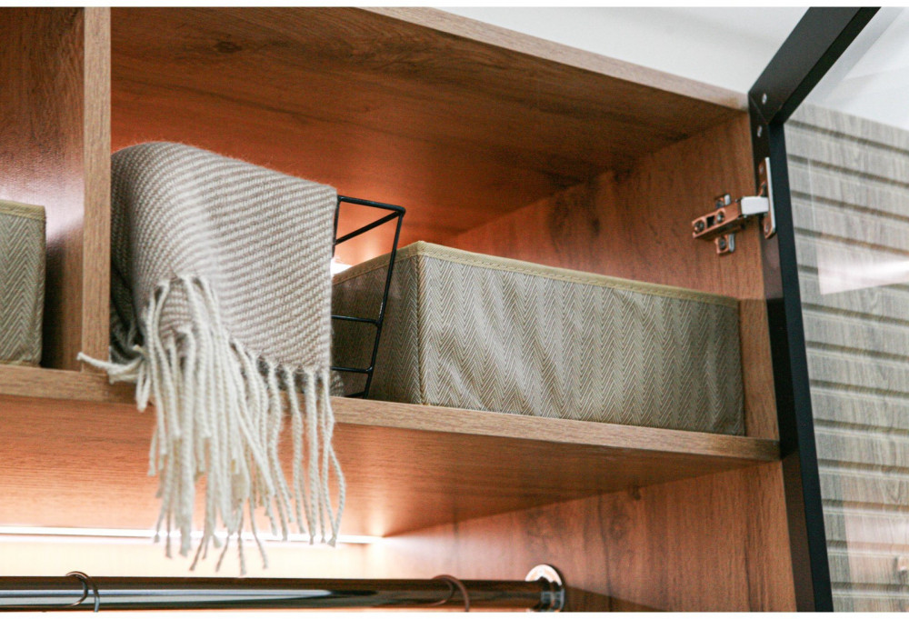 • прямоугольный короб с легкостью поместятся на полке в многоярусном шкафу, секционном шкафчике и даже прикроватной тумбочке.