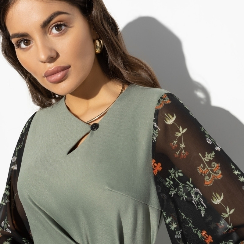 Интересное решение цвета: цветные рукава и оливковый основной фон
