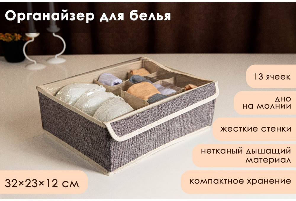 Доляна Органайзер для хранения белья с крышкой «Тео»-25% +107 удобна простой прочный