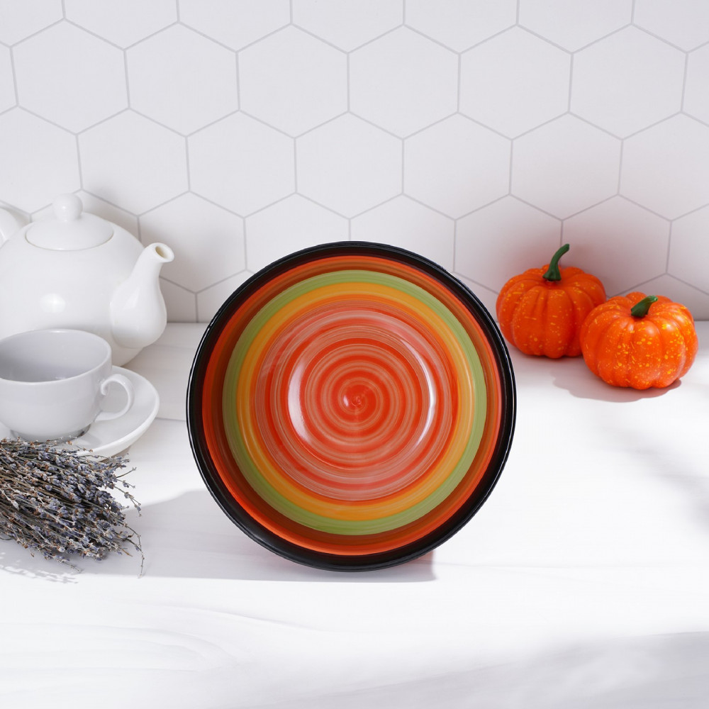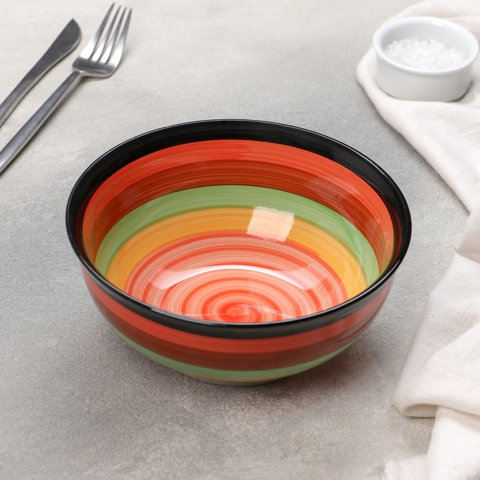 Яркий, удобный, вместительный салатник. Очень украшает сервировка.