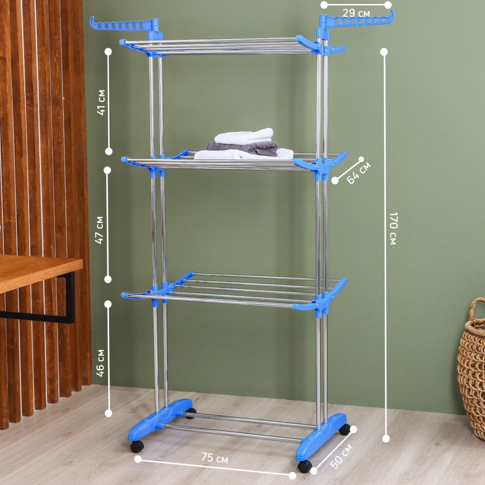 Доляна Сушилка для бельяВ данный момент этот товар отсутствует в продаже. Возможно, у нас найдется аналогичный или похожий товар здесь. Каждая хозяйка не раз сталкивалась с проблемой сушки белья. Сколько нервов потрачено во время натягивания бесконечных верёвок! А как часто они обрывались, превращая стирку в бессмысленно потраченное время? Теперь о неудобствах можно забыть! Настала пора обзавестись современным помощником — раздвижной стойкой-сушилкой для белья. |