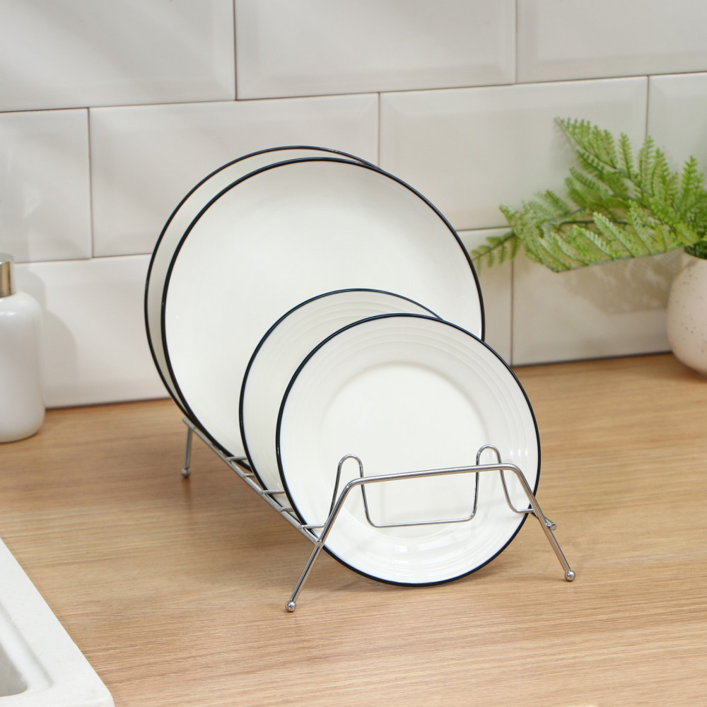 сушилка компактная, можно довольно много тарелок, крышек и других предметов посуды разместить, экономит место на коврике для сушки посуды
