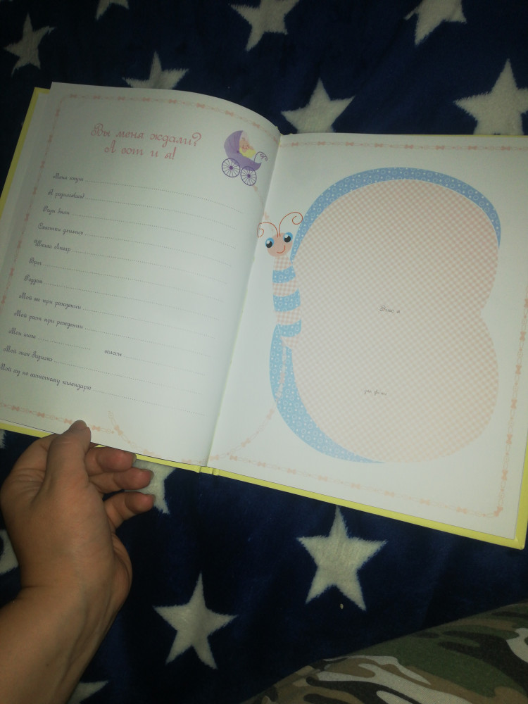 Очень красивый и милый альбомчик, нам с мужем понравился, как родится дочка буду заполнять. Жалко, что мало места для фотографий, на каждый месяц нет фото чтобы клеить. Но мы дополнительно купили еще альбом для фотографий. Страницы глянцевые хорошие.