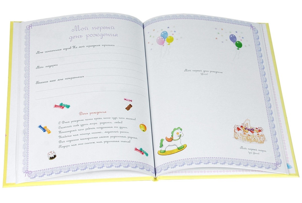 Альбом понравился, он еще специально нейтрального желтого цвета, как раз для тех родителей, которые еще не знают пол своего малыша. Советую приобретать такие альбомы заранее, т.к. там несколько страниц посвящено ребенку в животике))) Только сегодня получила и уже начала заполнять. Радует, что в отличие от других книг, тут много страниц и можно вести аж до 3 лет! И цена адекватная!