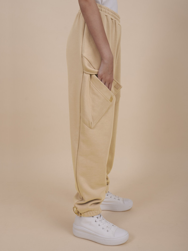 Детские брюки-карго для девочки. Комфортные штаны трендового широкого силуэта не будут стеснять движений ребёнка. По переду наклонные швы, в области колена вытачки — это создаёт актуальную форму брюк. Оригинальные карманы с вытачками закрываются клапанами на велькро (липучку) — просто и быстро открываются и закрываются, даже в перчатках. Широкая резинка в поясе не давит и не перекручивается. В поясе предусмотрен шнурок, с помощью которого можно регулировать объём и посадку брюк. По низу штанин также широкая резинка с возможностью регулировки эластичным шнурком со стопперами по бокам.
