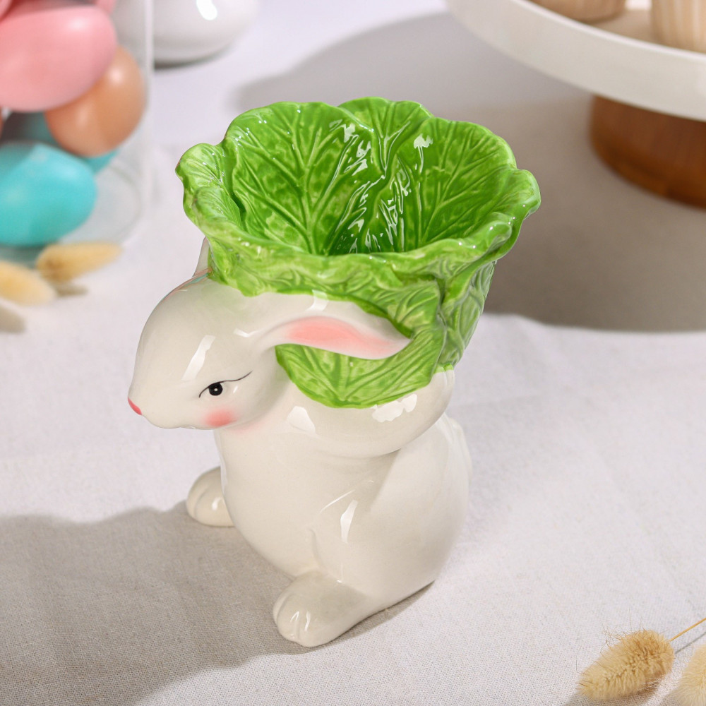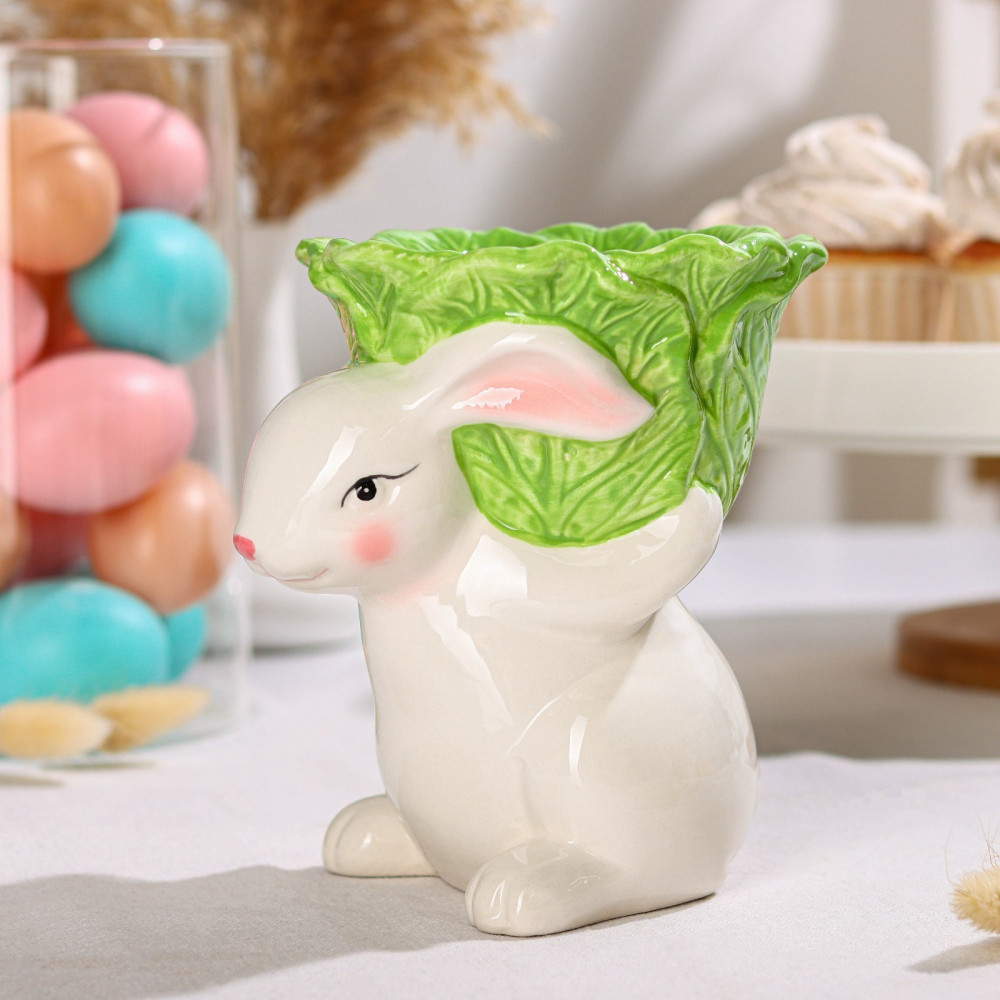 Подставка для яиц станет оригинальным решением для сервировки во время пасхальных торжеств и других пышных праздников. Посуда изготовлена из доломита и украшена забавным кроликом! Оригинальный дизайн изделия делает его гармоничным дополнением к любому варианту оформления стола. Внимание к деталям — признак заботливого хозяина. Создавайте наилучшее впечатление от застолья! Не рекомендуется мыть в посудомоечной машине.