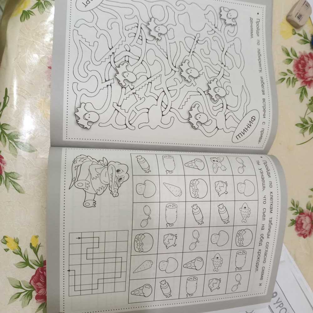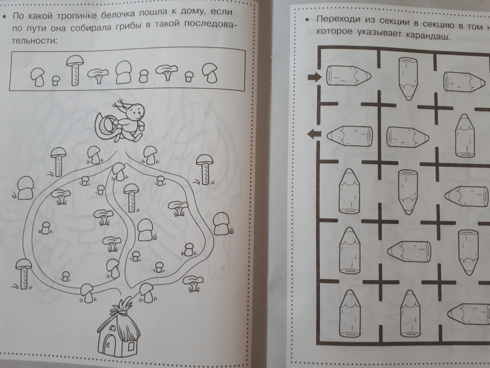 Взяла для любителя лабиринтов (4,5 года). Их-то он легко "прощелкает", но в книге много и других заданий, которые не очень-то и легкие, требуют прилежания (что нам нужно тренировать).