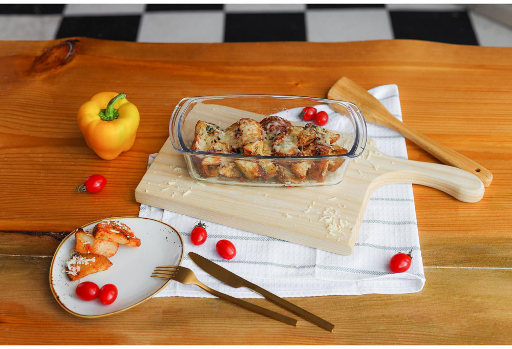 Форма для запекания — необходимый атрибут в каждом доме, где любят вкусно готовить. Изделие выполнено из жаропрочного стекла, прошедшего несколько стадий закаливания. Оно подойдёт для приготовления блюд из мяса, рыбы и овощей. Форма может быть использована для подачи готовых блюд. Рекомендуется избегать резких перепадов температуры.
