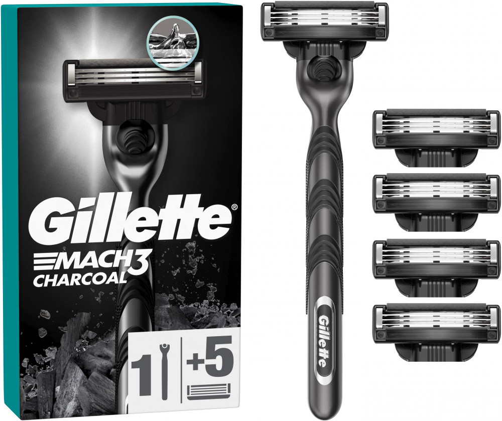 Gillette Станок бритвенный с 5 сменными кассетами «Gillette Mach 3 Charcoal»-19% +270 качественное бритье оригинальность надежность