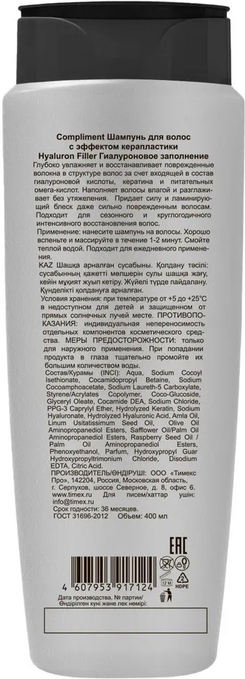 Compliment Шампунь для волос «Гиалуроновое заполнение»