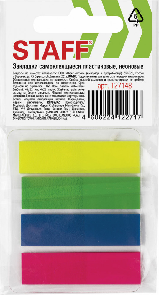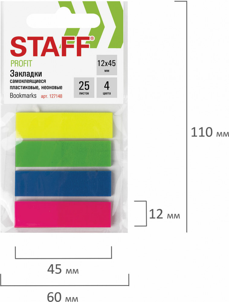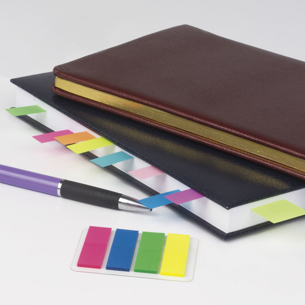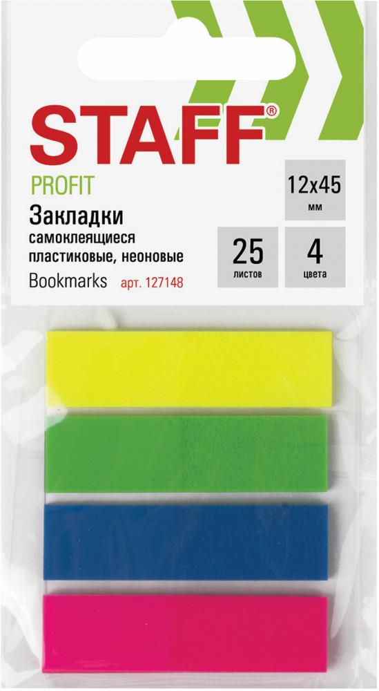 Staff Закладки клейкие неоновыеВ данный момент этот товар отсутствует в продаже. Возможно, у нас найдется аналогичный или похожий товар здесь. Яркие пластиковые полупрозрачные закладки акцентируют внимание на важных страницах книги, журнала, каталога и др. |