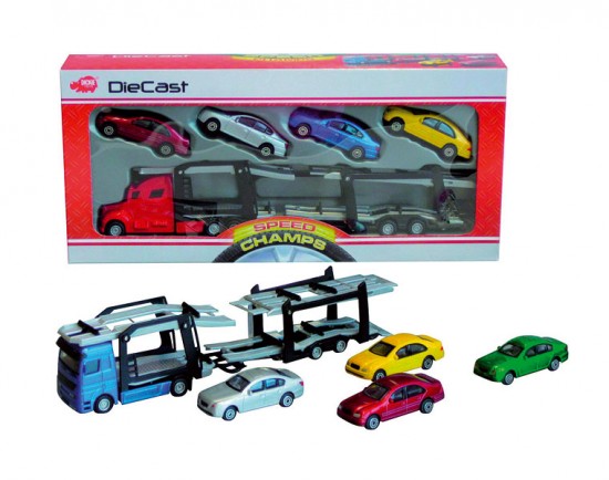 Dickie Трейлер для перевозки машин + 4 машинкиВ данный момент этот товар отсутствует в продаже. Возможно, у нас найдется аналогичный или похожий товар здесь. Трейлер для перевозки машин (28 см) + 4 металлические машинки (по 7 см). |