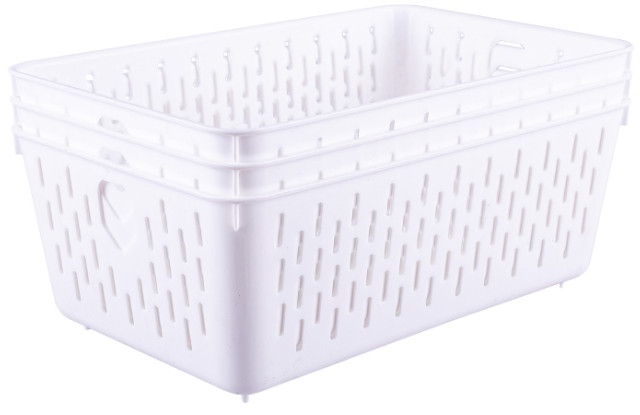 Приятного светлого цвета полиэтилен, без запаха, корзинки оптимального размера, подходят в шкаф