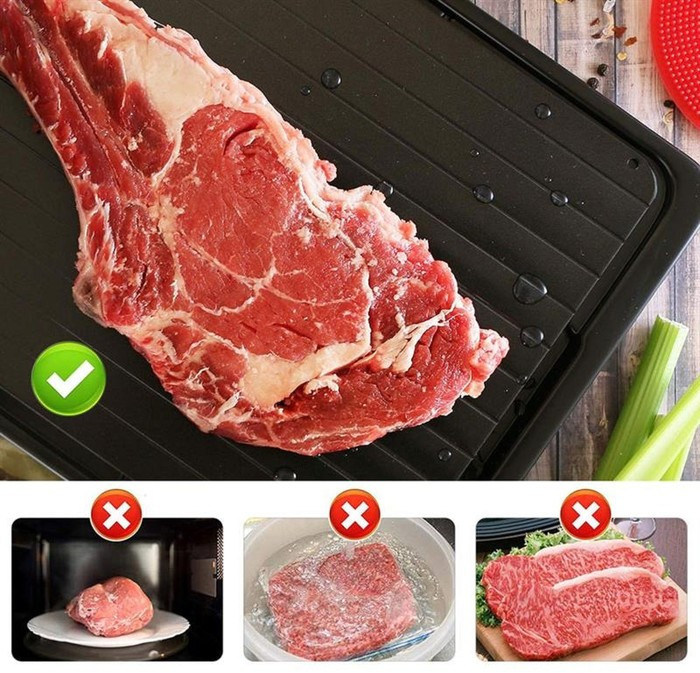 💳 Оплатить за товар можно при получении 🇰🇿 Есть бесплатная доставка по Казахстану от 1 дня 🎁 Копите бонусы с каждой покупки Противень для разморозки — инструмент из арсенала шеф-повара. Особая конструкция позволяет размораживать пищу быстрее, чем на плоской поверхности. Пользоваться противнем просто: положите на него замороженный продукт, и он разморозится намного быстрее — при этом сохранит все свои полезные свойства. Подходит для мяса, рыбы, морепродуктов, ягод, грибов. |