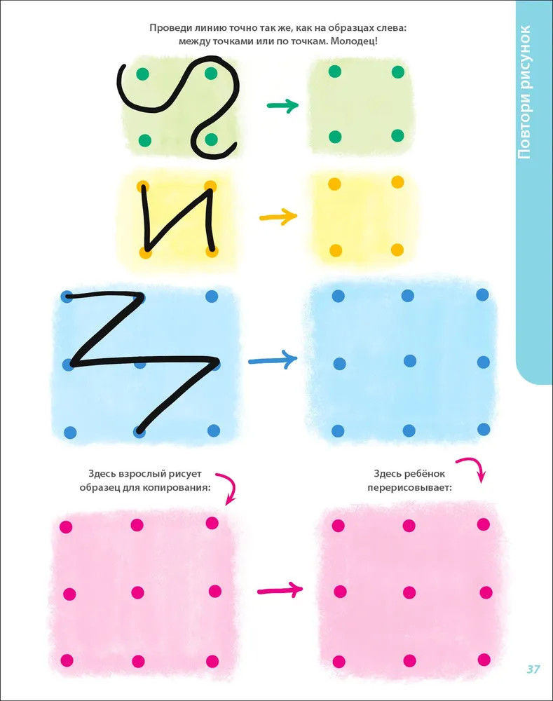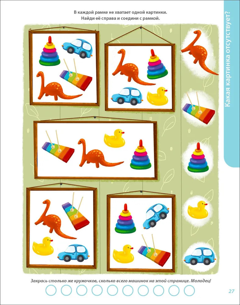 Развивающий альбом 3+. Пиши-стирайВ данный момент этот товар отсутствует в продаже. Возможно, у нас найдется аналогичный или похожий товар здесь. Развивающий альбом для детей 3-4 лет с многоразовыми страницами, на которых ребёнок найдёт увлекательные задания. Они развивают мелкую моторику и подготавливают руку к письму. Малыш будет проводить линии разной сложности, рисовать узоры, штриховать, перерисовать по образцу, делать пальчиковую гимнастику и весело и с пользой проводить время. Многократное повторение заданий полезно для укрепления нейронных связей, формирования навыков и их закрепления. Задания разработаны детским психологом, специалистом дошкольного образования. Кроме мелкой моторики они развивают общий кругозор, речь, мышление, зрительные внимание и восприятие, воображение и усидчивость. |