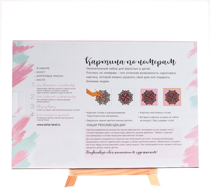 💳 Оплатить за товар можно при получении 🇰🇿 Есть бесплатная доставка по Казахстану от 1 дня 🎁 Копите бонусы с каждой покупки Набор для рисования станет находкой для людей, которые хотят творить! Специально разработанная уникальная серия росписи по номерам станет верным помощником начинающим художникам, с помощью которой они будут создавать настоящие шедевры изобразительного искусства! Написанная своими руками картина украсит интерьер или станет прекрасным подарком для родных и близких людей. |