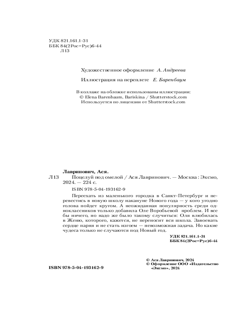 💳 Оплатить за товар можно при получении 🇰🇿 Есть бесплатная доставка по Казахстану от 1 дня 🎁 Копите бонусы с каждой покупки Серия: Young Adult. Инстахит. Романтика (покет большого формата) Праздничная новогодняя история от Аси Лавринович теперь в удобном формате покета! Милая, романтическая книга, наполненная волшебством зимних праздников. Переехать из маленького городка в Санкт-Петербург и перевестись в новую школу на кануне Нового года — у кого угодно голова пойдет кругом. А неожиданная популярность среди одноклассников только добавила Оле Воробьевой проблем. И все бы ничего, но надо же было такому случиться: Оля влюбилась в Женю, которого, кажется, не переносит вся школа. Завоевать сердце парня и не стать изгоем — невозможная задача. Но какие чудеса только не случаются под Новый год. |