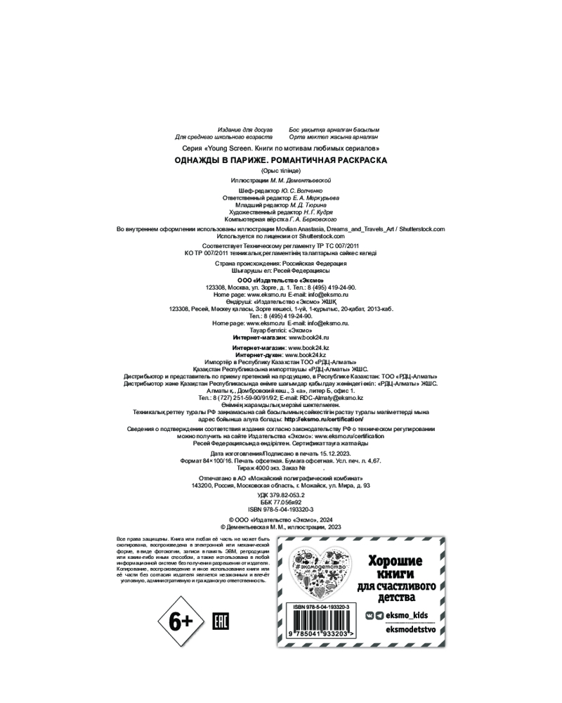 💳 Оплатить за товар можно при получении 🇰🇿 Есть бесплатная доставка по Казахстану от 1 дня 🎁 Копите бонусы с каждой покупки Серия: Young Screen. Книги по мотивам любимых сериалов Париж! ... Город романтики, высокой моды и невероятной кухни! Город, в который невозможно не влюбиться! Коллекция авторских рисунков по мотивам известного сериала подарит тебе атмосферу незабываемого путешествия по Парижу! Загляни в ресторан к обворожительному французскому шеф-повару, наполни яркими красками светские вечера и праздники столицы моды, прогуляйся по уютным улочкам и, конечно же, насладись видом на главный символ Франции — элегантную Эйфелеву башню! |