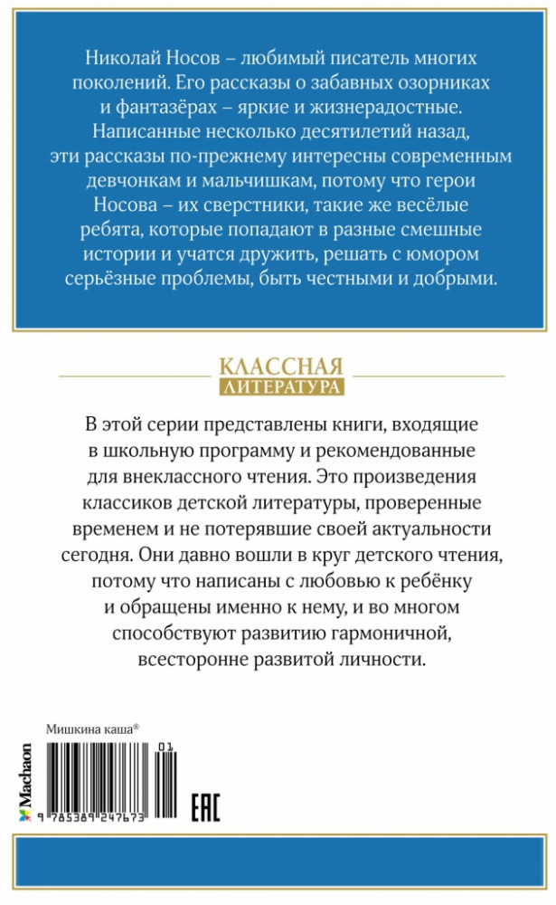 💳 Оплатить за товар можно при получении 🇰🇿 Есть бесплатная доставка по Казахстану от 1 дня 🎁 Копите бонусы с каждой покупки Серия: Классная литература В серии представлены книги, входящие в школьную программу и рекомендованные для внеклассного чтения. Это произведения классиков детской литературы, проверенные временем и не потерявшие своей актуальности сегодня. Они давно вошли в круг детского чтения, потому что написаны с любовью к ребёнку и обращены именно к нему и во многом способствуют развитию гармоничной, всесторонне развитой личности. |