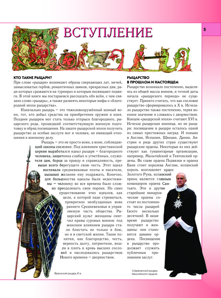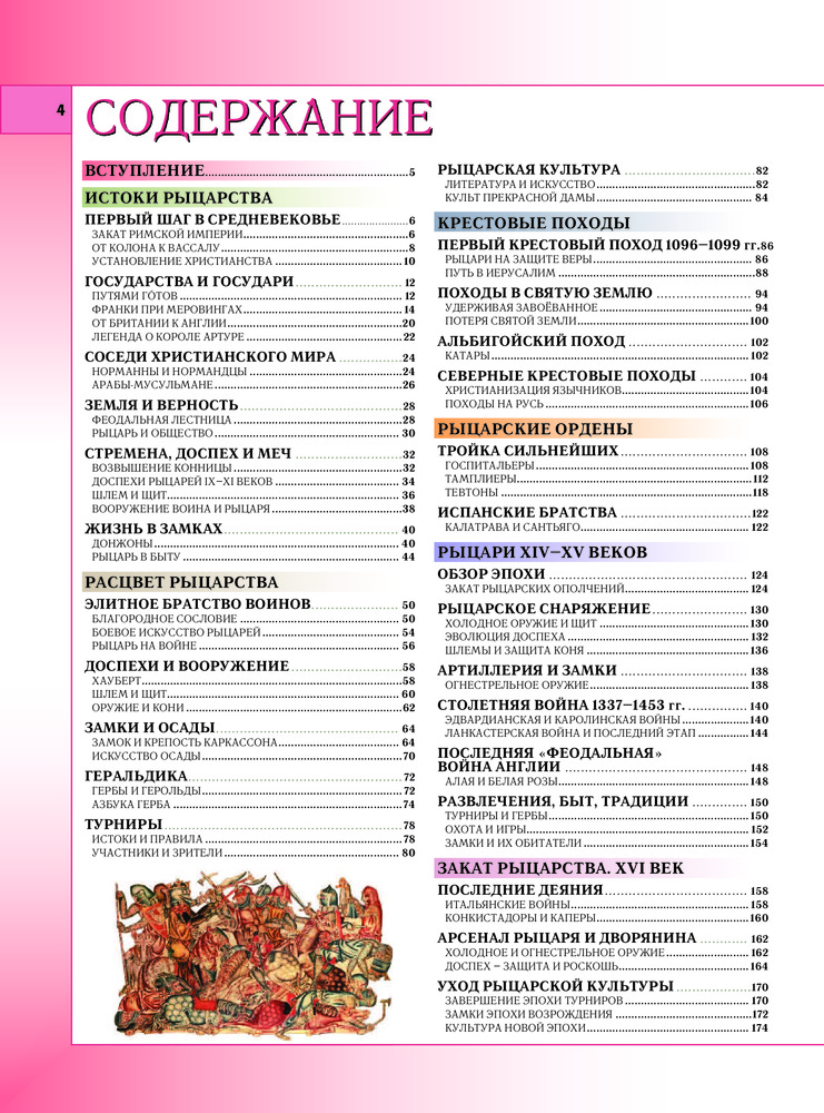 Мой сын в восторге от книги. Читает с интересом, много информации о рыцарях, доспехах, замках. Книга красочная, лощенные листы, доступная информация . Спасибо вам!