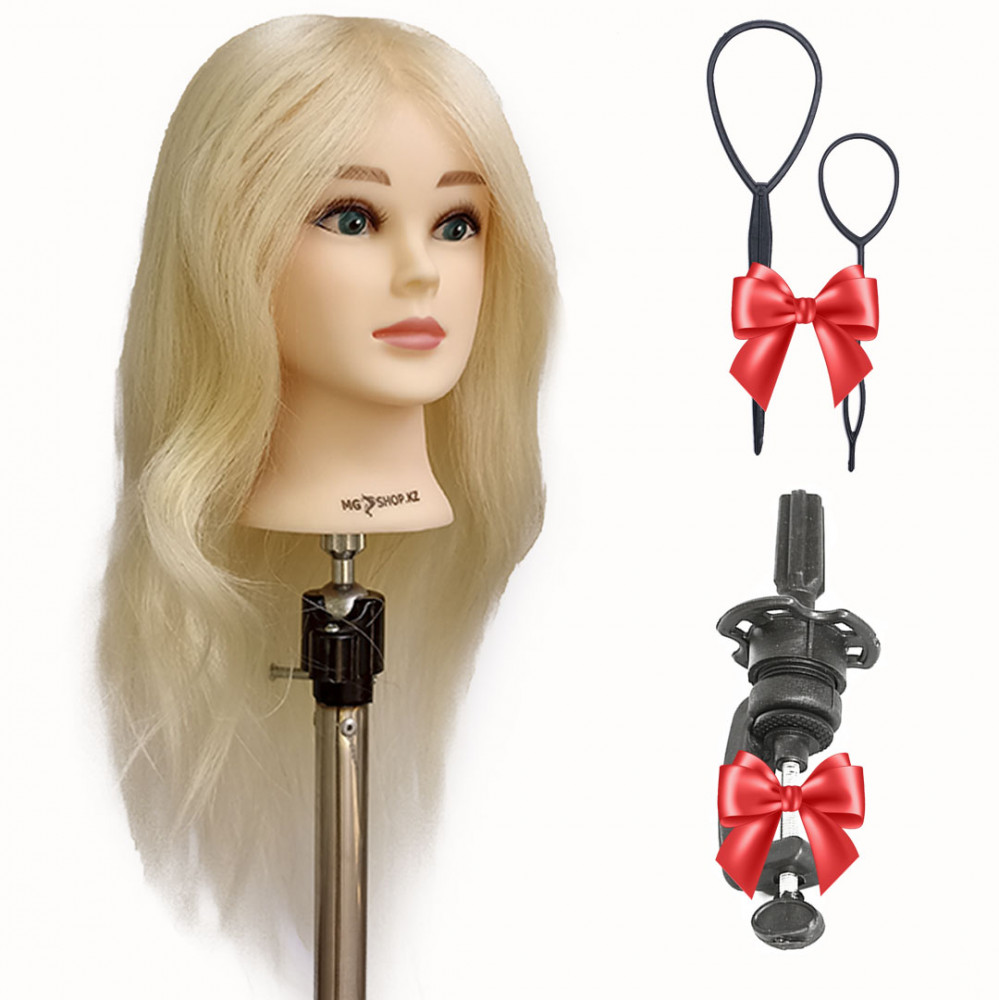 Mgshop.Kz Манекен-голова 95% натуральный, блонд, стандартная густота волос+310