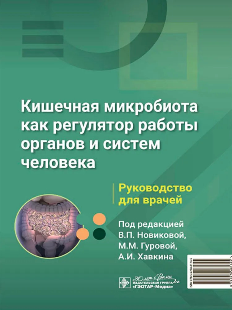 систему в онтогенезе, но и формируются и преобразовываются в ходе жизнедеятельности даже зрелого организма. В этом контексте авторы попытались рассмотреть многогранность взаимодействия кишечной микробиоты с организмом человека не только как экстракорпорального органа, выполняющего, без сомнения, огромное количество функций с помощью метаболитов, сигнальных молекул, микровезикул и микроРНК, а с позиций функциональных систем — осей, таких как «микробиота — кишка — ЦНС», «микробиота — кишка — кожа», «микробиота — кишка — печень» и др. Крайне важно, что в рамках этой парадигмы возможно описание взаимодействия диады «микробиота — организм» не только в норме, но и при патологии, что и сделано авторами, поэтому настоящее руководство имеет не только научное, но практическое значение.