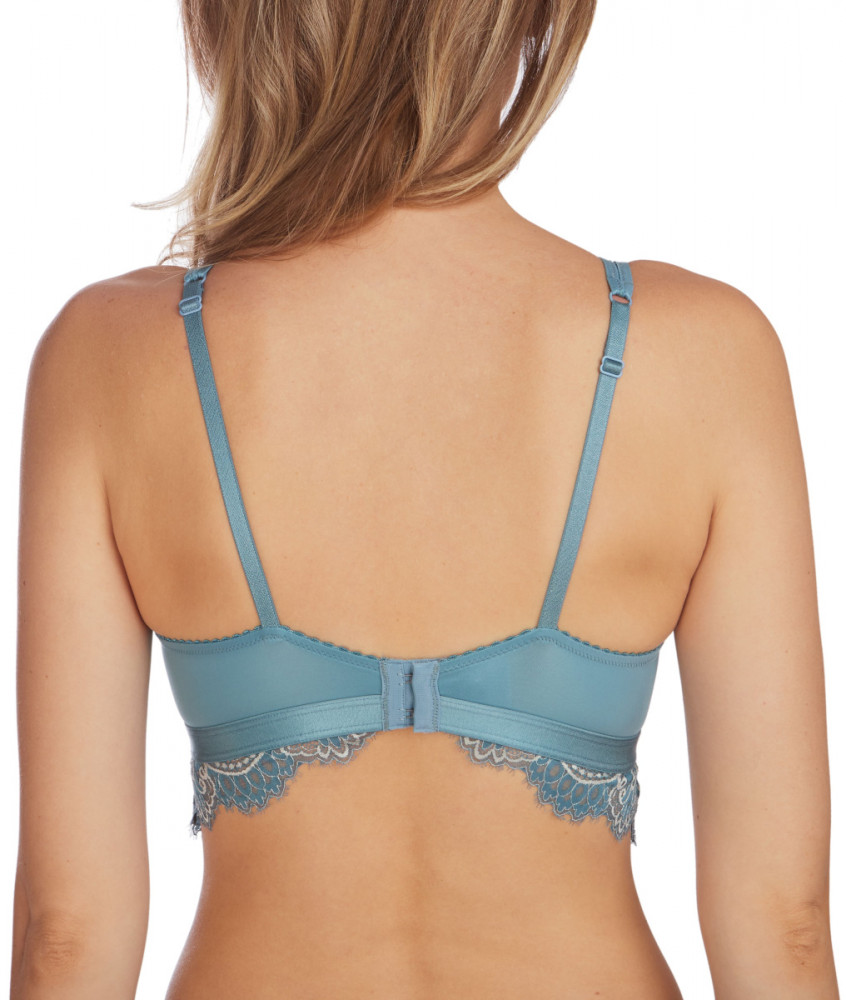 Бюстгальтер-топ с поролоновыми чашками без каркасов от бренда Milavitsa из коллекции «Серенада», выполнен из эластичного кружева и эластичного полотна. Дизайн модели отличается обилием кружева и декора и эффектной цветовой гаммой. В филигранном рисунке кружева с нитью кордоне читаются искусно вплетенные арки и загадочные цветы. Чашки и линия каркасов декорированы атласной тесьмой с блеском.