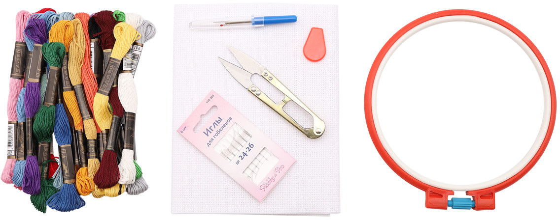 • пяльцы пластиковые 160 мм — 1 шт.;